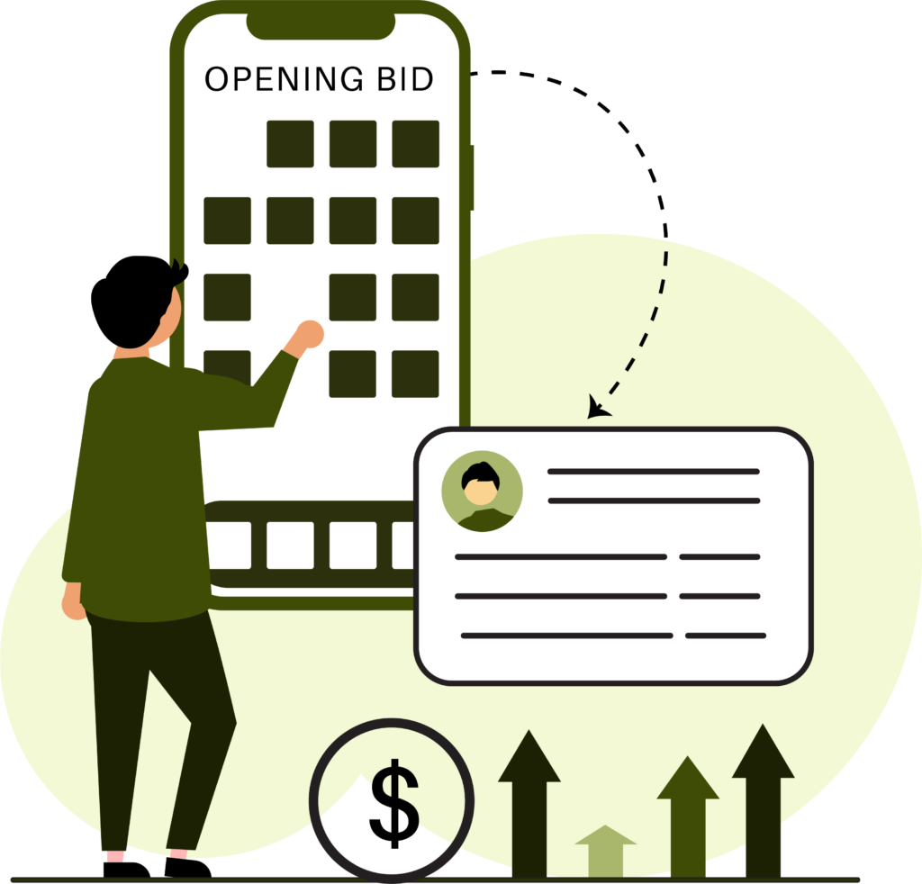 A seller lists an item with a minimum bid price known as the ‘opening bid’.